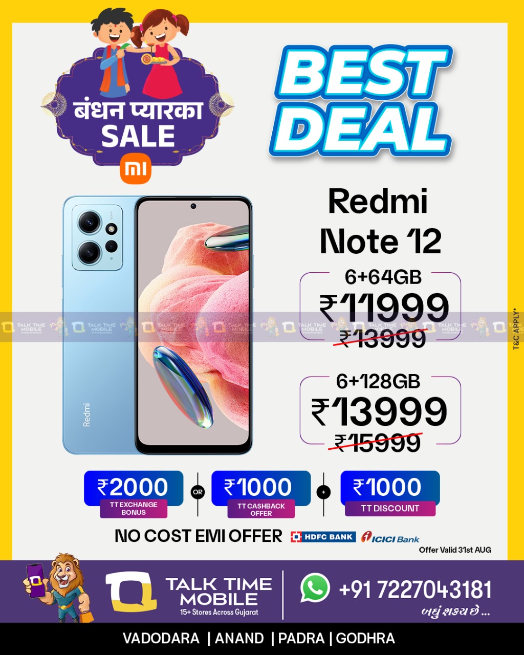 BEST DEAL πŸ’₯ πŸ“±πŸ€© Redmi Note 12 Affordable yet premium! Get a glimpse of the first impressions and experience the power of this amazing mobile. Available Offers: βœ” Cashback Offer βœ” Instant Discount βœ” Lowest Price βœ” No Cost EMI βœ” Easy EMI πŸ‘‰More Information call now +91 7227043181 VADODARA | ANAND | PADRA | GODHRA #bestmobilestore #talktimemobilestore #talktimemobile #baroda #AppleDays #applesale #mobilephone #SpecialDiscountOffer #discounts #beststore #iphon #visitnow #tecno #camontecno #redminote12 #redmi #bestprice #tecnophantomseries #phantomseries #buynow #samsung #vivo #vivov29e #bestoffer #offer