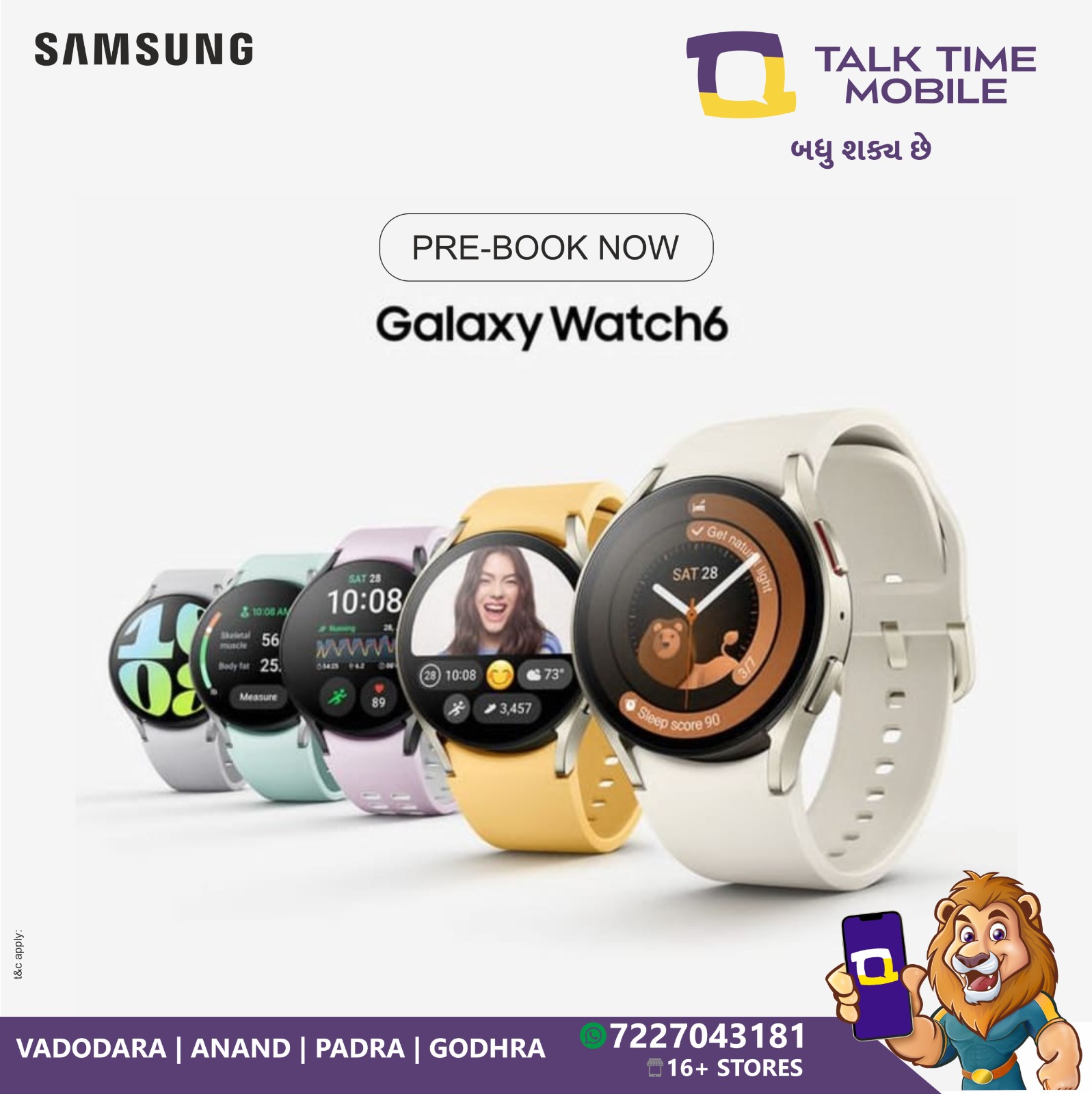 Pre-book now: Galaxy Watch6 Get full of surprises and full of amazing offers. Available Offers: βœ” Cashback Offer βœ” Instant Discount βœ” Lowest Price βœ” Easy EMI πŸ‘‰More Information call now +91 7227043181 VADODARA | ANAND | PADRA | GODHRA #bestmobilestore #talktimemobilestore #talktimemobile #baroda #AppleDays #applesale #mobilephone #SpecialDiscountOffer #discounts #beststore #iphon #visitnow #tecno #camontecno #camon20pro5g #bestprice #tecnophantomseries #phantomseries #buynow #samsung #vivo #galaxyzfold5 #galaxywatch6 #galaxyzfilp5 #bestoffer #offer
